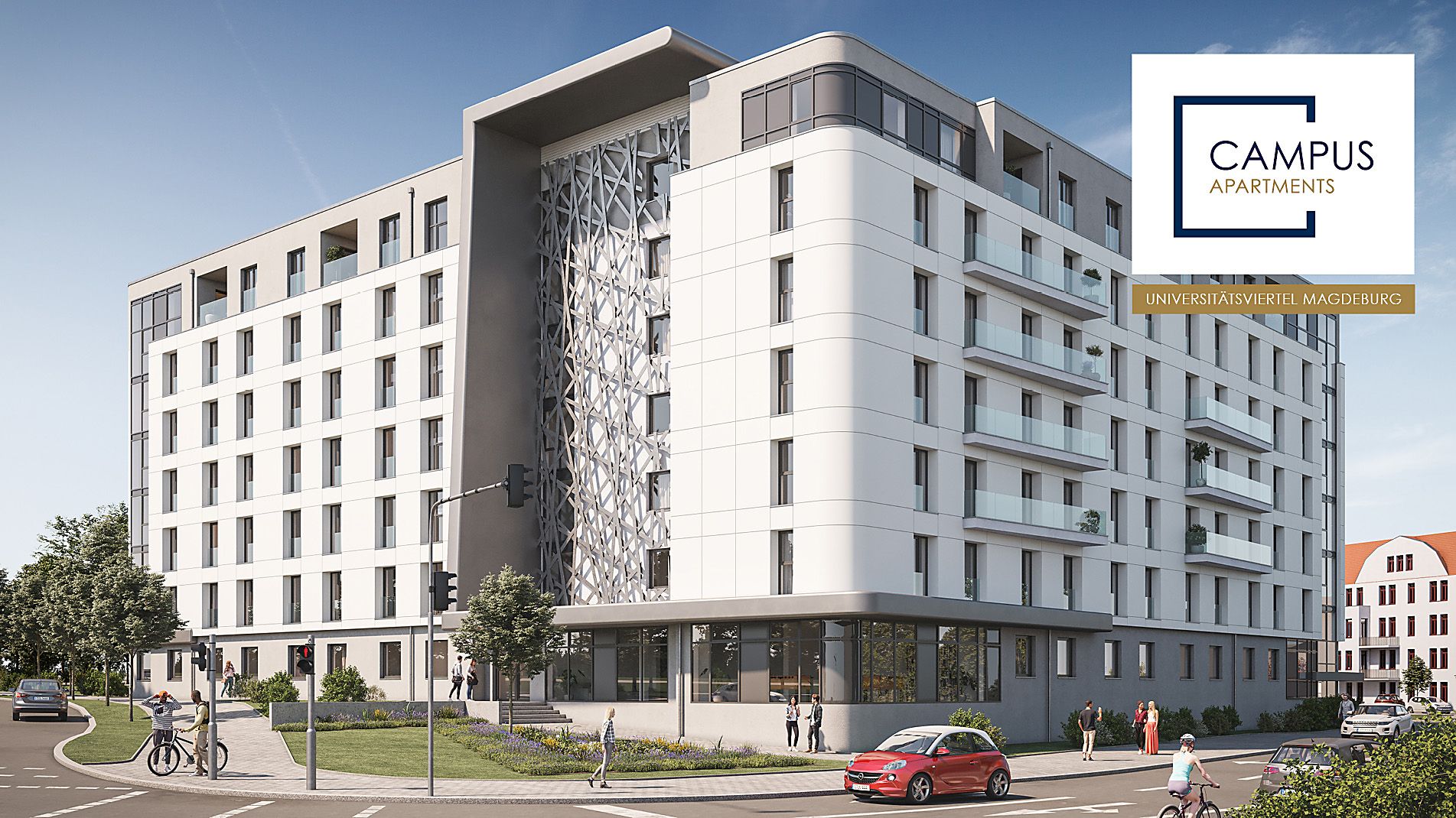 Zwischen dem Universitätsgelände und dem Wissenschaftshafen, angrenzend an das Zentrum der Stadt Magdeburg, entsteht am Wittenberger Platz ein außergewöhnlicher und attraktiver Neubau mit 224 Studentenapartments und Wohnungen für wissenschaftliche Mitarbeiter der Otto-von-Guericke-Universität Magdeburg.